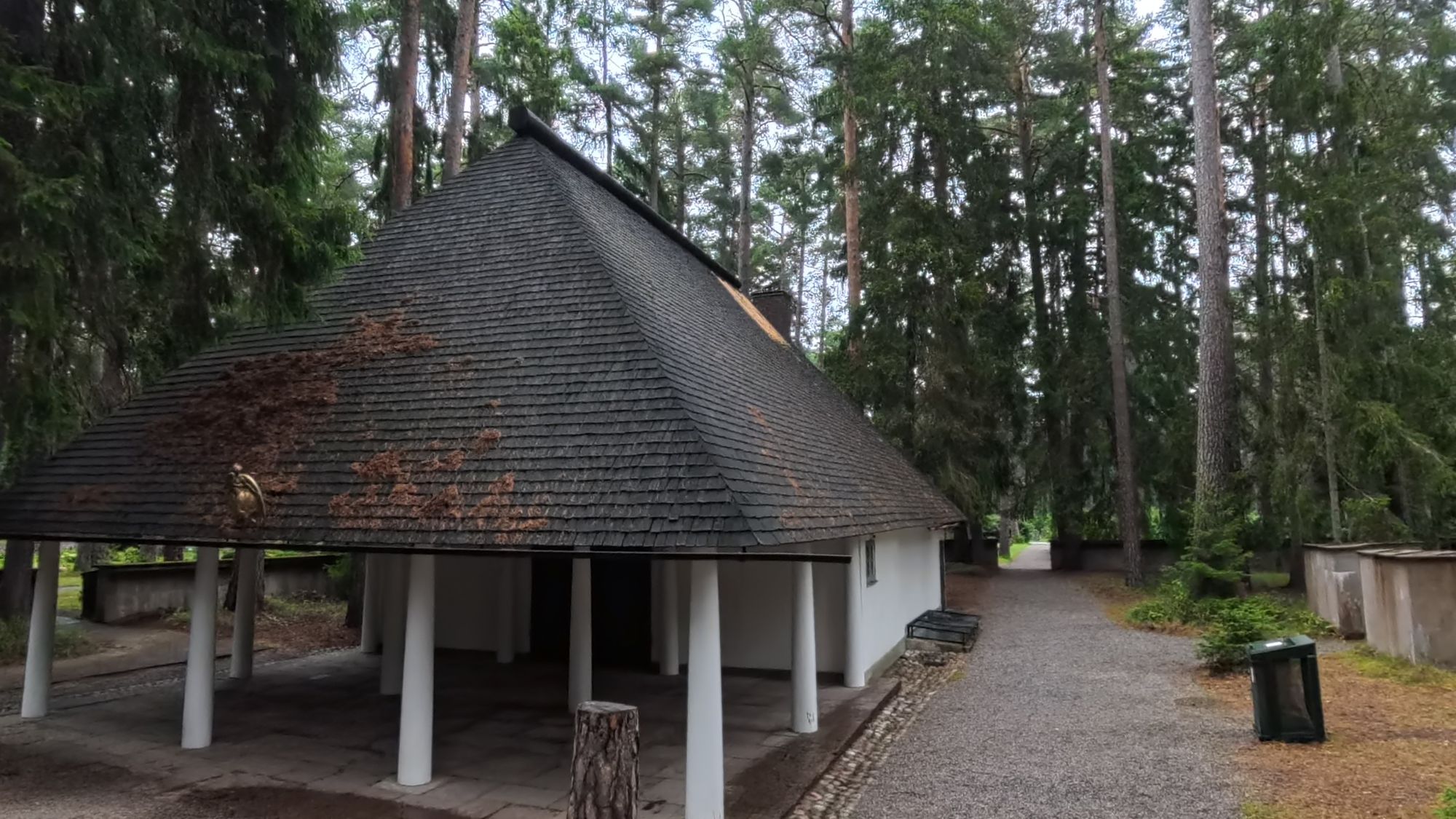 2025年8月31日から9月8日まで欧州に火葬場・墓地建築調査に出かけ撮影した3枚です。1枚目・2枚目の写真は、世界遺産にもなっている「森の墓地」内にある1920年竣工の「森の礼拝堂」です。設計はグンナー・アスプルンド。「森の墓地」はコンペに当選したアスプルンドとシーグルド・レーヴェレンツトの二人の作品です。当時無名の若き建築家で「森の墓地」がデビュー作でもありアスプルンドにとっては最後の作品でもあります。1940年竣工の「森の火葬場」設計はアスプルンドが手掛けています。「森の礼拝堂」は行政から厳しい予算での設計を求められ、それに答えるため木造で作られた礼拝堂です。この建物は、アスプルンドが新婚旅行で訪れたデンマークユトランド半島南部の荘園邸宅から影響を受けたといわれています。2枚目の写真は、そのリセンルンド邸宅です。18世紀から19世紀ごろの建物といわれています。